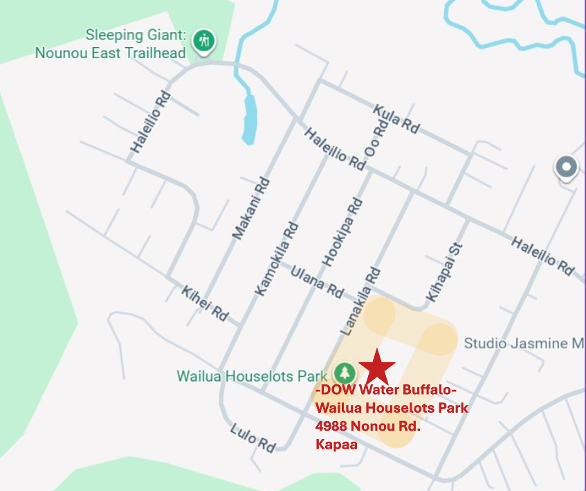 5:30 a.m. 12-11-2025 (UPDATE) – DOW crews are currently flushing the system. A water buffalo is available at Wailua Houselots Park, located at 4988 Nonou Road, Kapaa. Customers must bring their own water containers.